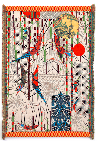 And what of paper and graphic design – the stuff of his early career? “At first I thought working with tapestry was limiting for me. I was trained to think about the resolution, treating the textile like a digital file. He acknowledges that his work with woven textiles in recent years has brought to his graphic design a more restrained palette, “maybe more sophisticated,” he observes after adjusting to the limitations imposed by the yarns and structures of weaving.