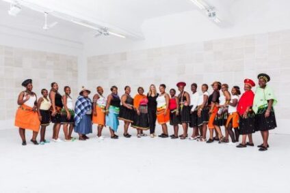 In 2005 Lou moved from Los Angeles to a very different context: the KwaZulu-Natal province of South Africa – a region with a long established tradition of bead weaving. Today she divides her time between the city of Durban, on the eastern coast of the province, and Los Angeles. This geographic shift has allowed her to provide stable employment to a team of Zulu women who contribute to the creation of her large-scale works.