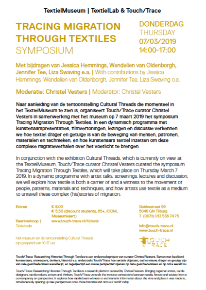 1/3 ← → Tracing Migration Through Textiles symposium 2019 Symposium Tracing Migration Through Textiles home page image: Jennifer Tee